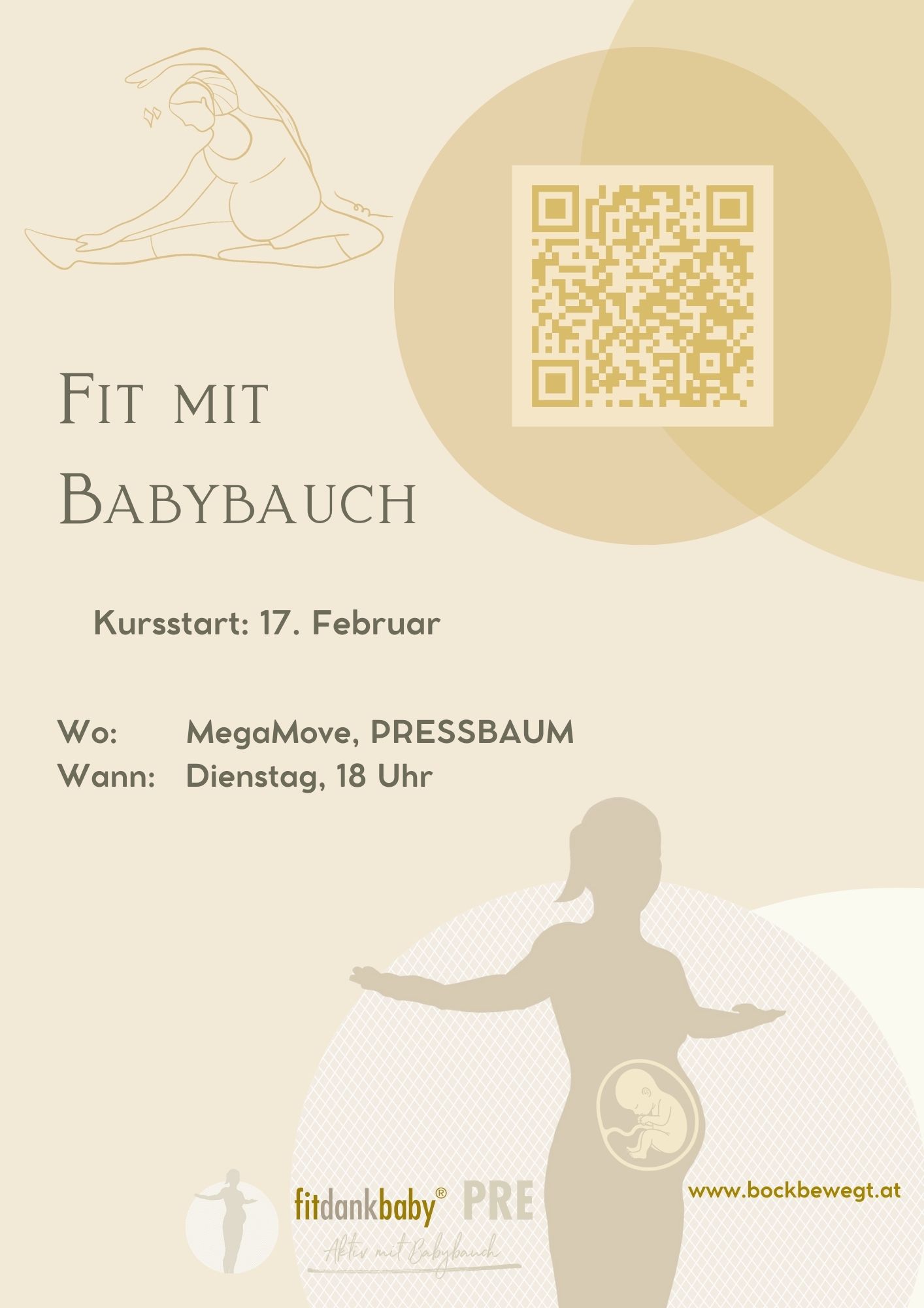 Gemeinsam mit deinem Babybauch kannst du bei uns unvergessliche Kurse buchen. Knüpfe Kontakte, verbringe eine tolle Zeit mit Gleichgesinnten und halte deinen Körper fit. Hole dir positive Engergie in unsere schwungvollen, mit Liebe angeleiteten Stunden.